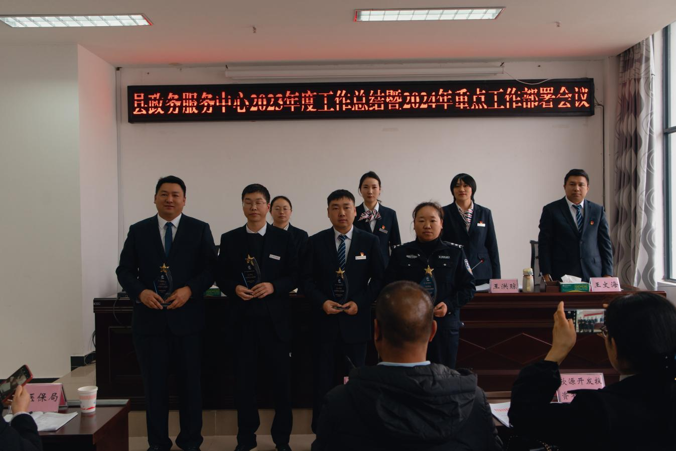 会上,对2023年窗口被投诉;年度考核测评结果和推优上报人员;派驻人员出勤;各窗口办件量和四个季度评比“争做先锋当表率”和“工作之星”评选情况作了通报。对2023年涌现出的4个“优质服务先进集体”和11名“优秀服务标兵”作了表扬,并颁发了奖杯和荣誉证书。获奖代表作了交流发言。