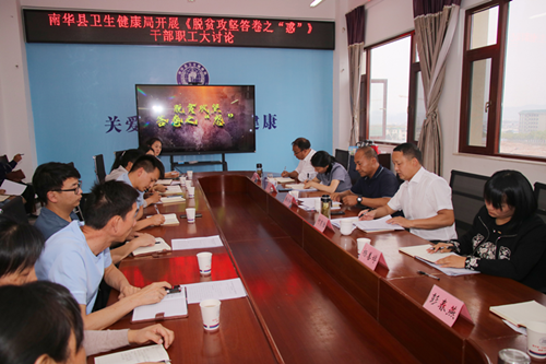 为深入推进南华县卫生健康局干部队伍“破冰塑形”工程,强化干部调优提质行动,全力推进乡村振兴,4月17日,南华县卫生健康局组织收看《脱贫攻坚答卷之“惑”》专题片并开展讨论会议。县卫健工委书记、局党组书记、局长主持会议,副县长张舫瑞到会指导并提出要求,局领导班子成员、全体干部职工参加讨论会。