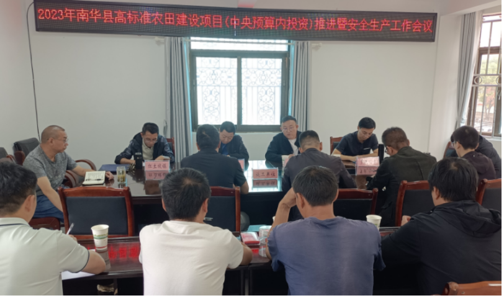 5月13日上午,2023年南华县高标准农田建设项目(中央预算内投资)推进暨安全生产工作会议在县农业农村局召开。县农业农村局、罗武庄乡、红土坡镇分管领导,县发展改革局业务股室负责人,四个施工标段负责人、管理人员、现场监理及县农田水利建设管理中心全体人员共20人参加会议。