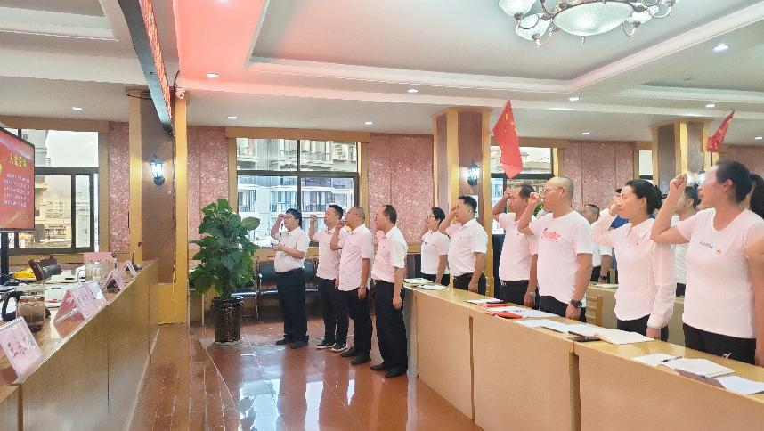 【重温入党誓词 砥砺初心使命】“我志愿加入中国共产党,拥护党的纲领,遵守党的章程,履行党员义务……”全体党员面向鲜红的党旗,高举右拳,用铿锵有力的声音重温入党誓词。铮铮誓言铿锵有力、掷地有声,饱含着对党的深情和为人民服务的决心,彰显着党员们不忘初心、牢记使命的坚定意志。