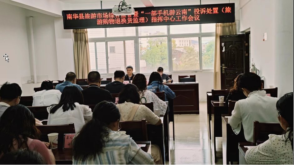 为持续开展好旅游市场秩序整治工作,进一步加强全县文旅市场综合监管调度及“一部手机游云南”投诉处置(旅游购物退换货监理)指挥中心建设,充分发挥政府在旅游市场综合监管及投诉处置方面的组织领导、统筹协调作用,切实抓好旅游市场监管工作 ,高效快捷处理好旅游投诉,维护好全县旅游市场秩序和广大游客合法权益 ,7月11日,南华县组织召开旅游市场综合监管暨“一部手机游云南”投诉处置(旅游购物退换货监理)指挥中心工作会议,指挥中心成员单位分管领导及工作人员共30余人参加了会议。