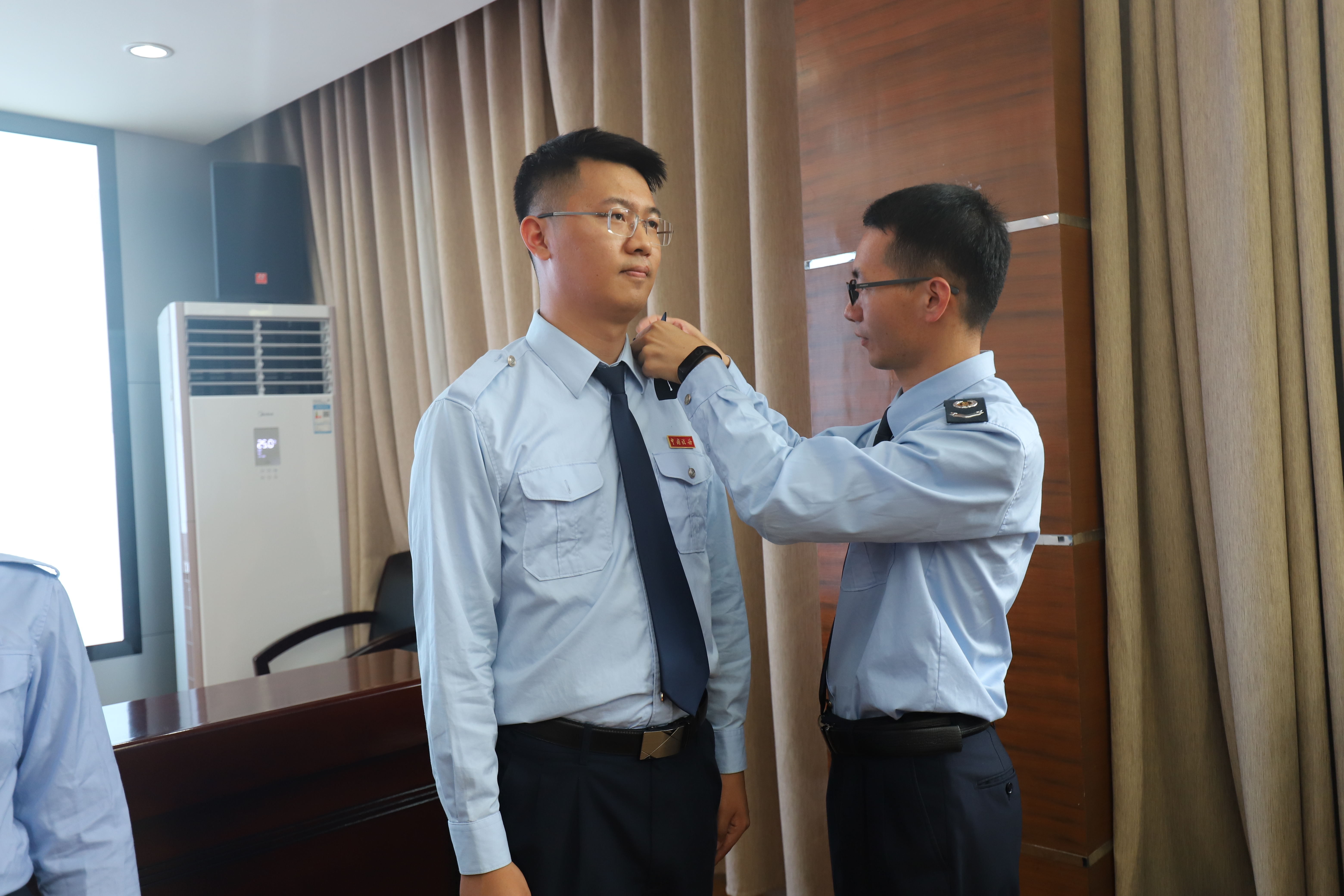 南华县税务局党委书记、局长对新同志们的到来表示热烈欢迎,班子成员为新入职公务员佩戴肩章。随后,在全体青年干部的见证下,5名新入职干部整齐排列、高举右手,向宪法庄严宣誓。