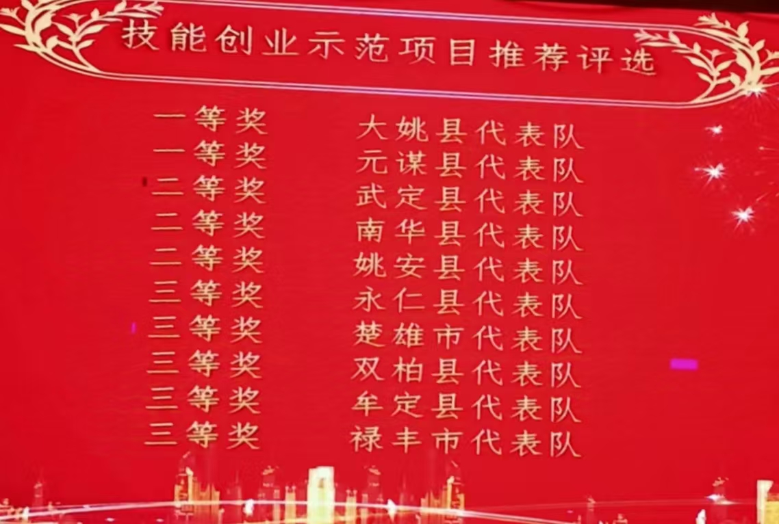 经过激烈角逐,南华县代表队获得优胜奖3人,其中获得“技术能手”称号2人;南华县七彩彝绣文化传播有限公司彝绣技能创业示范项目州级评选获二等奖。同时,南华县代表队被评为“优秀组织奖”。