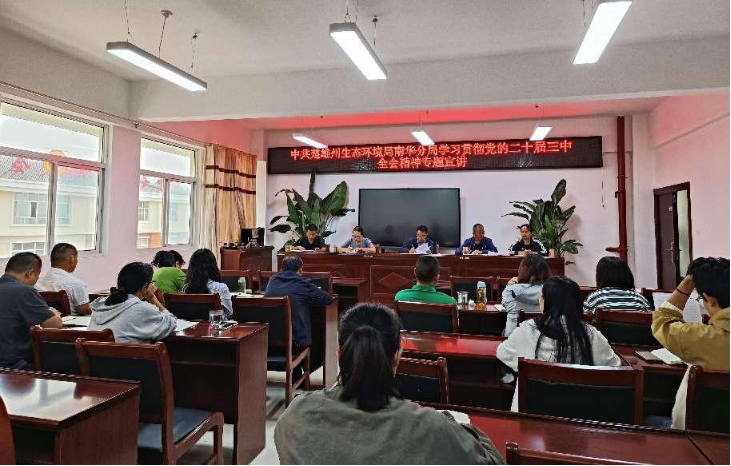 近日,楚雄州生态环境局南华分局采取个人自学、交流研讨、集中学习等方式组织开展党的二十届三中全会精神宣讲会,会议传达学习了《中共中央关于进一步全面深化改革、推进中国式现代化的决定》,干部职工结合工作实际,围绕“深刻领会和把握进一步全面深化改革的主题、重大原则、重大举措、根本保证,将全会精神转化为推进人与自然和谐共生的绿美南华建设的强大力量”作交流发言。