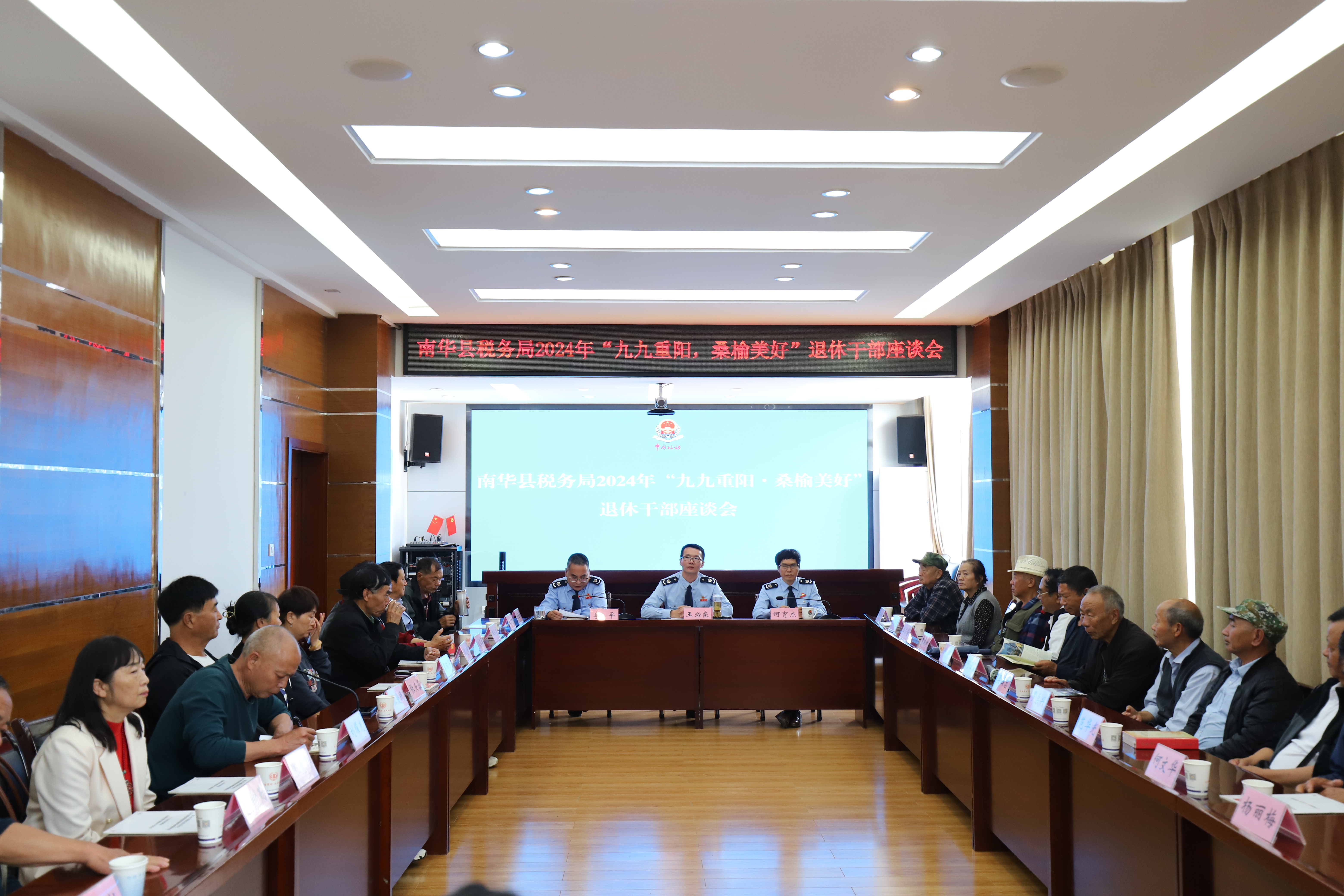 素秋九月好时节,菊花烂漫重阳至。为弘扬中华民族孝亲敬老传统美德,营造养老孝老敬老的良好社会氛围,在重阳节当天,南华县税务局召开“九九重阳 桑榆美好”退休干部座谈会。