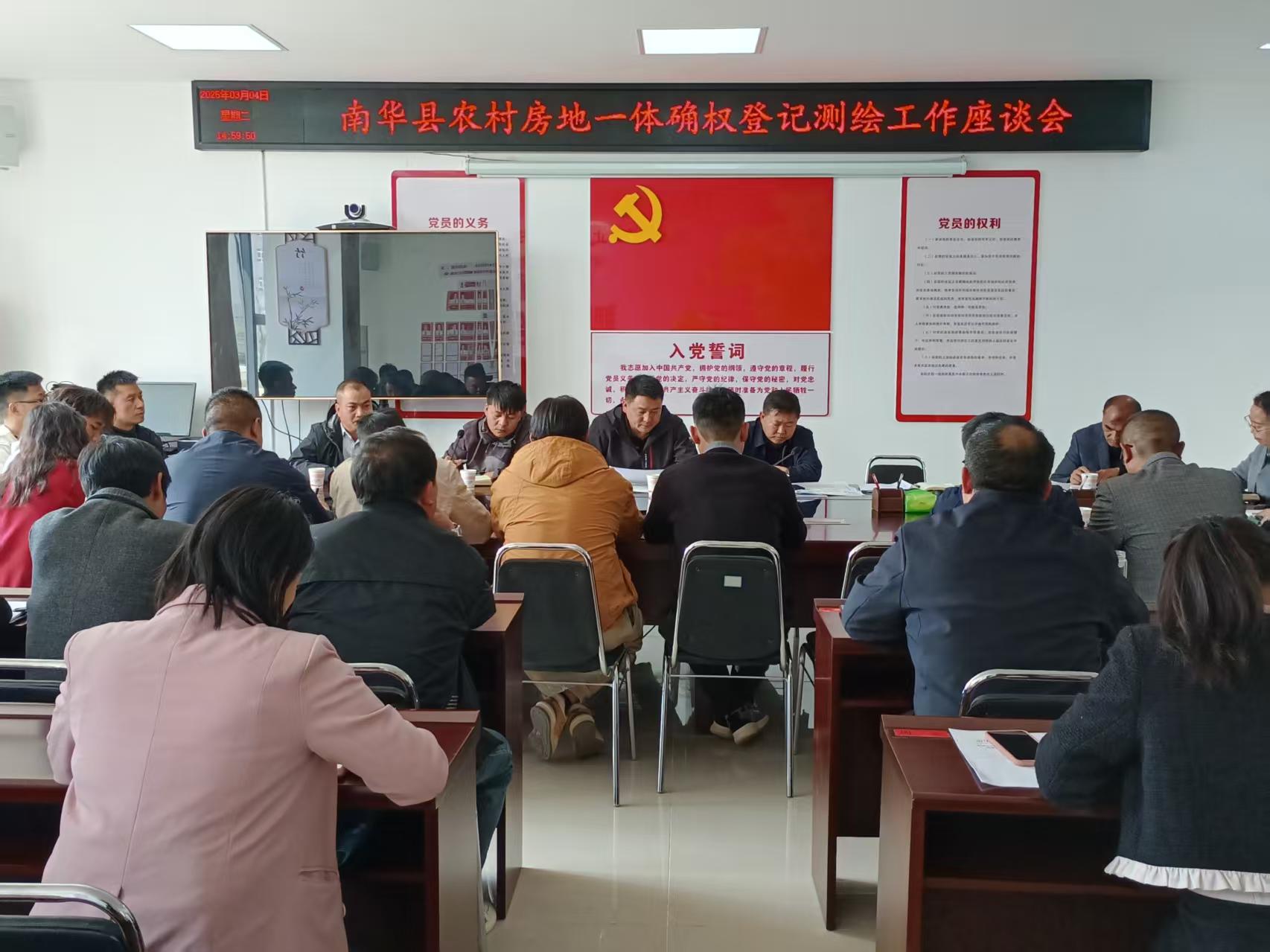 座谈会上,参会人员集中学习了《南华县农村房地一体宅基地确权登记发证工作实施方案》并围绕登记清单、登记程序、测绘标准、工作开展过程中存在的堵点、难点问题以及经验做法开展交流。