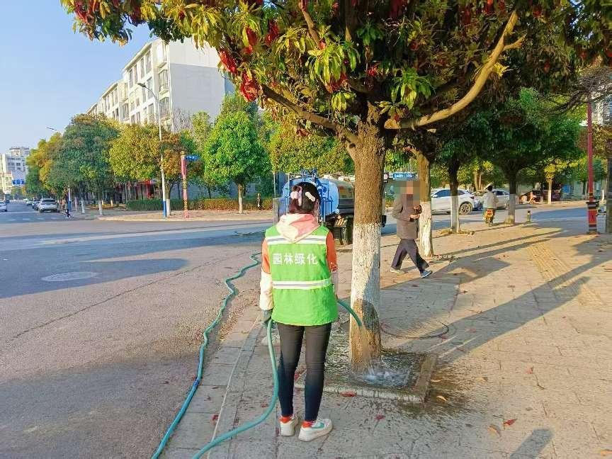 充足的水分是绿植茁壮成长的基石。绿化养护工作人员合理调配人工水车,与自然降水巧妙配合,严格遵循“浇足浇透”原则,根据不同树种、树龄以及土壤湿度精准把控浇水量和频次,已对城区7000多棵行道树展开全面、细致的浇灌作业,水车加人工浇水约21000方,确保每一棵行道树都能“喝饱水”,让行道树焕发出勃勃生机。