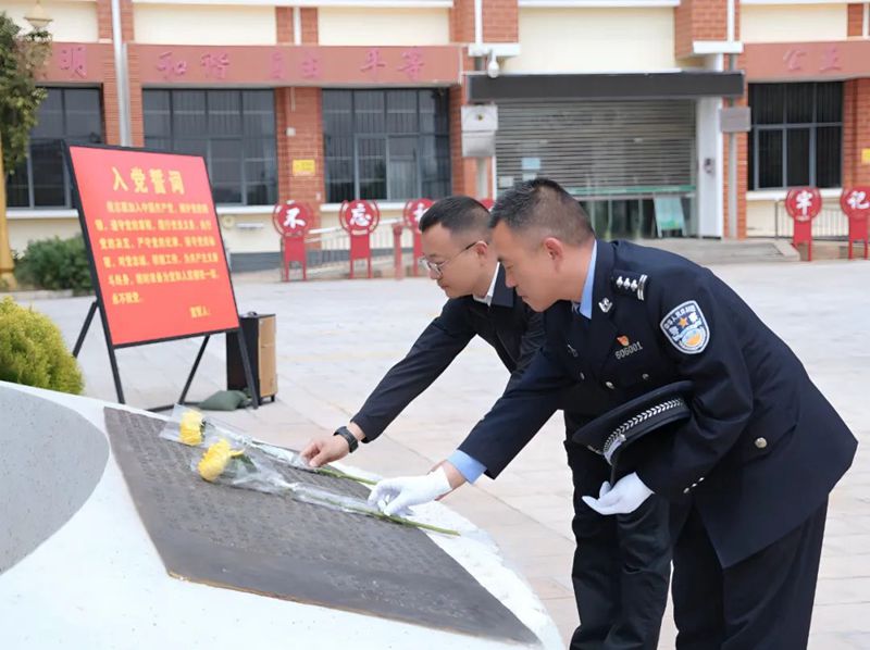 一寸山河一寸血,一抔热土一抔魂。4月3日,南华县公安局联合县委政法委、县信访局县司法局、县退役军人事务局在张舫烈士广场开展“赓续•2025•清明祭英烈”主题党日活动。“向革命先烈默哀!”烈士广场内庄严肃穆,全体参加人员整齐列队肃立于革命烈士纪念碑前低头默哀,以无声致敬的方式表达对革命先烈的哀悼和追思。