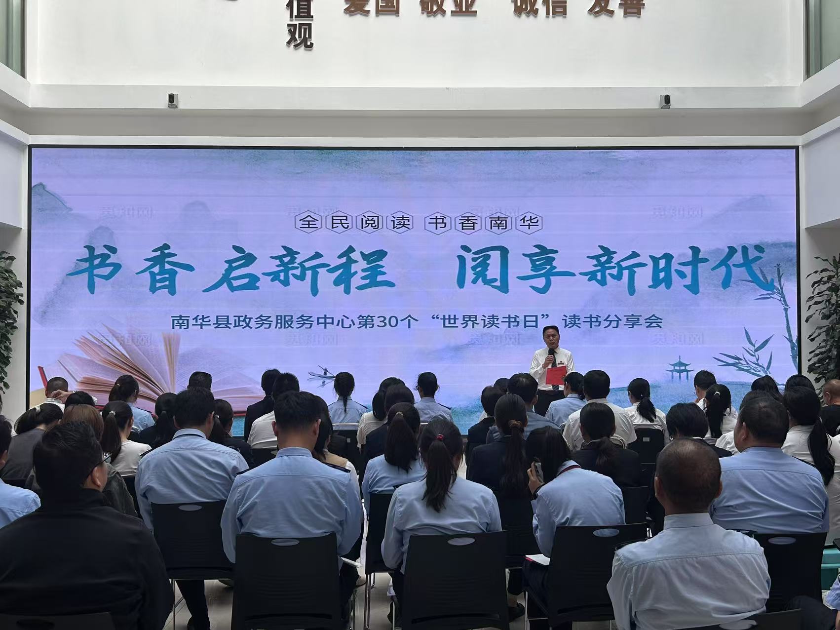 在第30个“世界读书日”,一场意义非凡的活动在南华县政务服务中心大厅(中庭)举行。此次活动以“书香润政务·礼仪暖民心”为主题,将读书与政务服务深度融合,旨在提升政务服务人员的礼仪素养,为群众提供更优质的服务。