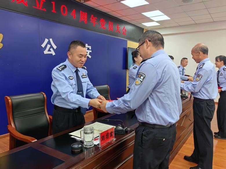 表彰先进树标杆,激励奋进新征程。庆祝中国共产党成立104周年党员大会上,对龙川派出所、罗武庄派出所、看守所党支部等3个先进党支部、石磊等5名优秀党务工作者、周志贤等10名优秀共产党员进行表彰。局领导班子成员为获奖集体和个人颁发奖牌、证书,优秀党务工作者和共产党员代表分别分享党建工作经验和为民服务心得。通过表彰先进,进一步激发了全局党员民警干事创业的热情,营造了“学先进、赶先进、当先进”的浓厚氛围。
