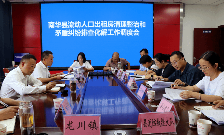 为深入贯彻落实上级关于深化基层治理、维护社会稳定的决策部署,进一步夯实平安南华建设根基,8月15日下午,南华县召开流动人口出租房清理整治和矛盾纠纷排查化解工作调度会,县委常委、县委政法委书记杨健、副县长刘培金、张育果出席会议并提出要求,县级相关部门、龙川镇主要领导参加会议。