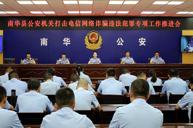8月18日,南华县公安局召开打击电信网络诈骗违法犯罪专项工作推进会,局党委副书记、政委赵润敏出席会议并讲话,局党委委员、副局长周晓斌主持会议,在家局党委班子成员、各部门主要负责同志参加会议,会议以视频会形式开至派出所。