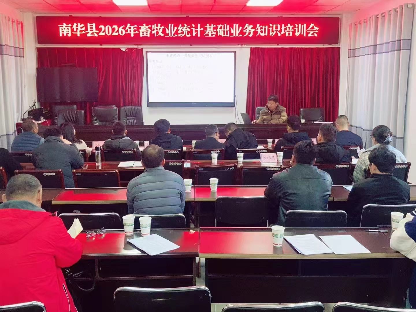 1月16日,南华县农业农村局举办畜牧业统计基础业务知识培训会。县农业农村局分管领导,畜牧兽医水产股、县动物疫病预防控制中心、县动物卫生监督所副股级以上人员及业务骨干,10乡镇农业农村发展服务中心负责畜牧业工作副主任或畜牧兽医工作负责人、畜牧业统计人员、6个肉牛养殖场(大户)负责人共37人参加培训 。