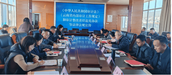一是认真落实“谁执法,谁普法”的工作要求,进点会议做好“大众化”综合普法。审计组成员向参会人员发放《中华人民共和国审计法》、内部审计、审计整改宣传彩页,并对《中华人民共和国审计法》《云南省内部审计工作规定》《云南省审计查出问题整改责任追究办法(试行)》等相关法律法规进行宣传。