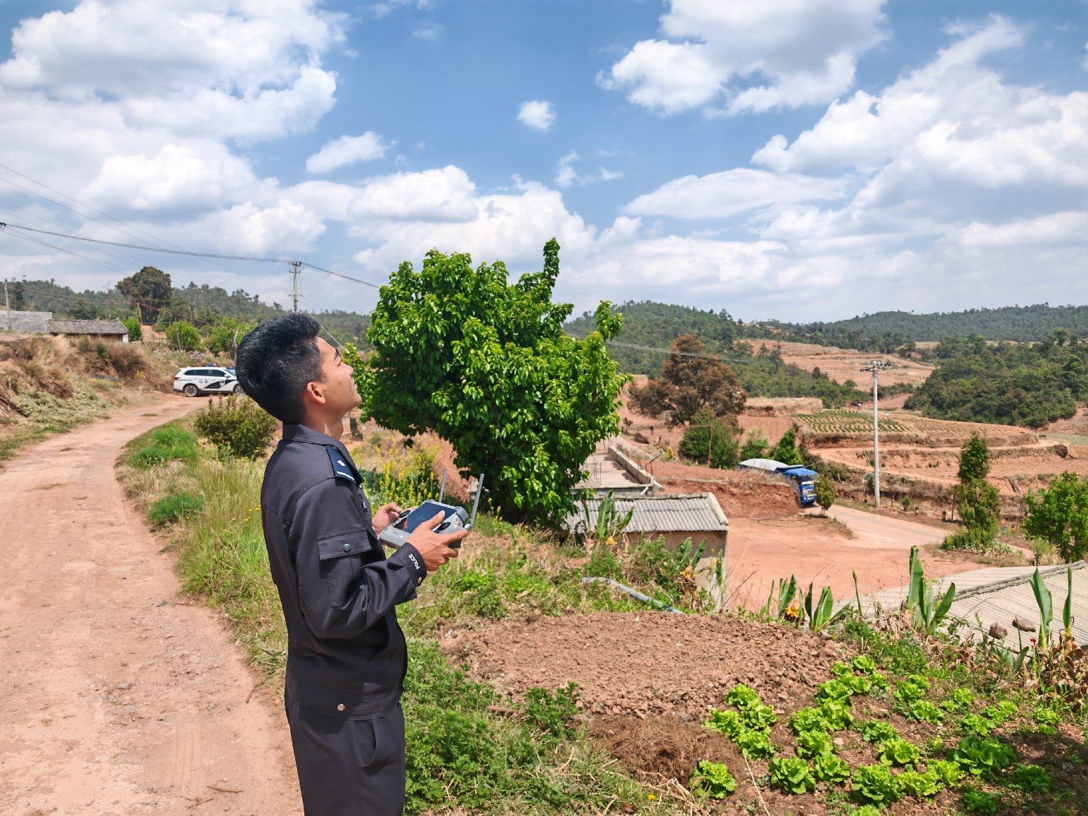 接警后,值班民辅警迅速携带县局新配发的无人机赶赴现场。途中,民警通过电话了解羊群走失的时间、地点及周边地形特点,并安抚群众。到达现场后,民警没有盲目进山搜寻,而是立即启动无人机,利用其高空视角、热成像及变焦巡查功能,对周边山坡、沟壑、灌木丛等复杂区域展开立体化排查。