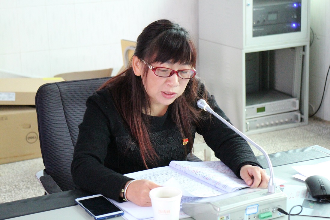 图为:南华县委党校教师夏银香老师在给师生讲授“宪法知识”