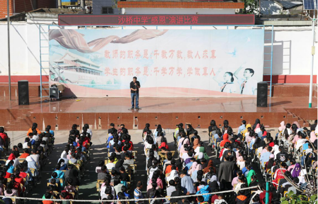 10月16日,沙桥中学全体师生在学校升旗台前举行2018年“感恩的心”演讲比赛。
