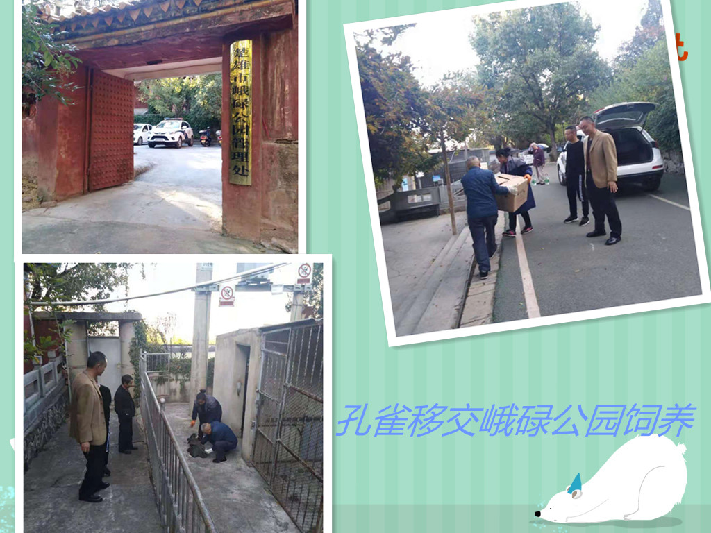 为确保孔雀得到有效救助饲养,南华县森林公安局联系具有野生动物驯养繁殖资格的楚雄市峨碌公园,于当天下午将孔雀移交公园管理人员。