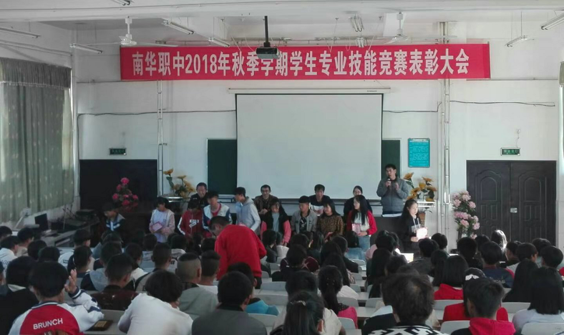 南华县职业高级中学学生技能大赛经过两轮激烈角逐,于2018年11月15日圆满结束。全体师生参加了颁奖仪式,校领导为获奖选手颁发了证书及奖品,校长刘忠富在会上讲话,对全校师生提出希望和要求。