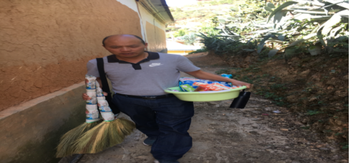 副处职级干部杨成山购买清洁用品到贫困户家参与家庭卫生打扫