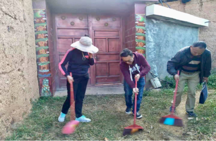 审计局职工、驻村工作队员、村委会人员入户参与卫生清洁