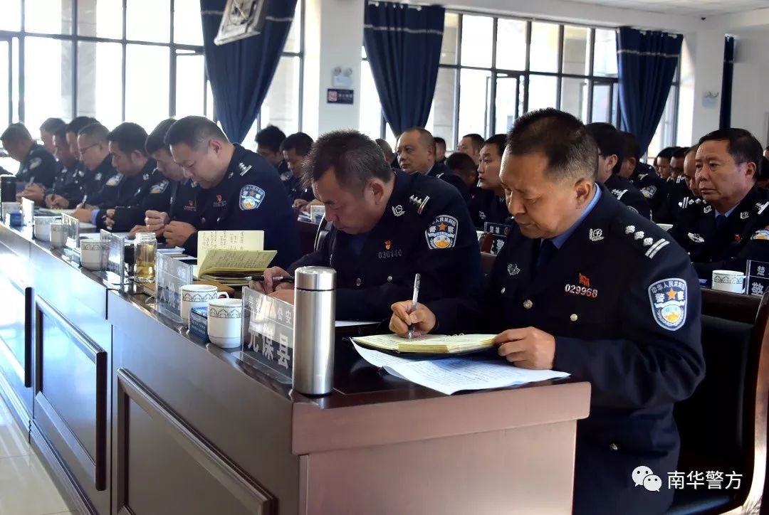 副州长、州公安局党委书记、局长马闻,省公安厅警务保障部副主任包皓,南华县委常委、县委政法委书记张志洪出席会议并讲话,会议由州公安局党委委员、副局长邱文华主持。十县(市)公安局局长、警务保障室主任、22个重点派出所所长,州公安局治安支队、交警支队负责人共120人参加会议。