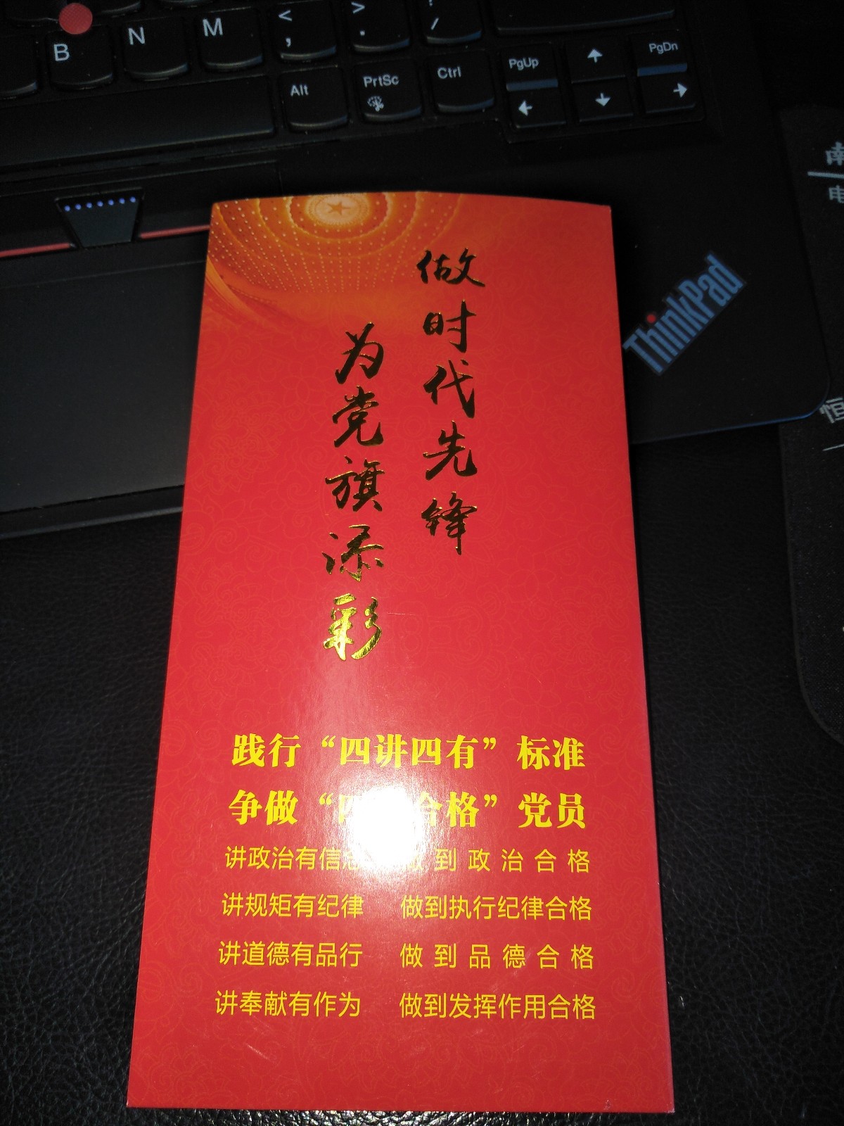 刚进办公室,我局党支部委员杨成山同志就将一个红彤彤的政治生日纪念卡送到我手里,一份暖意,一份责任。