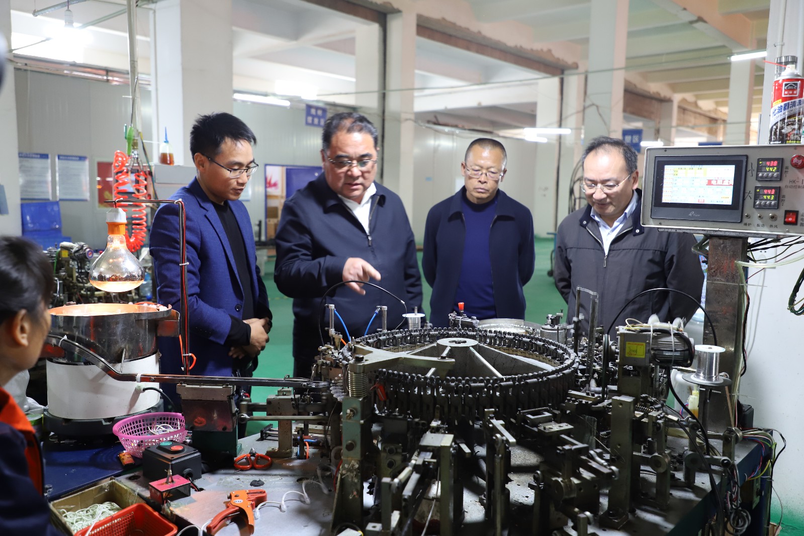 在华芯电子科技有限公司,当杨厅长得知朱照福建厂起初从自家偏僻的乡村小院发展到县城建厂并发展壮大后,杨厅长夸赞朱照福“白手起家、有志青年、创业典范”。强调企业发展,质量是核心,鼓励华芯电子科技有限公司进一步弘扬工匠精神,创建自己的质检体系,争取早日拿到企业产品“身份证、通行证”,同时勉励华芯电子科技有限公司要继续加速发展,帮助更多的贫困人口脱贫致富。