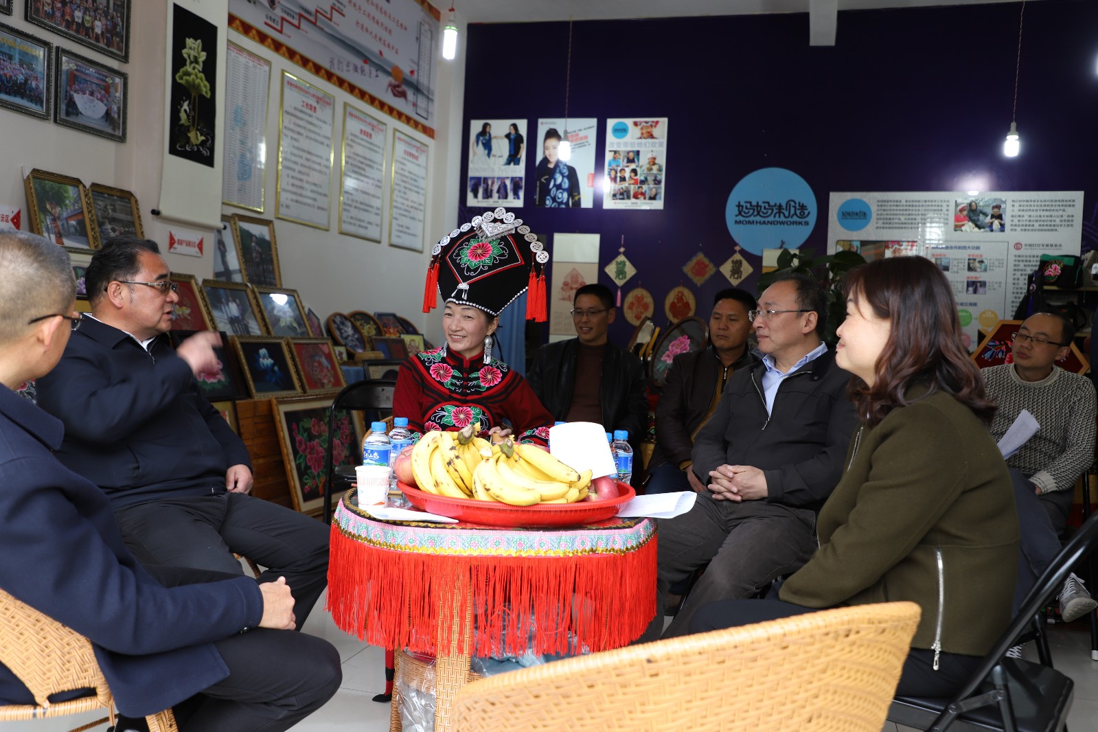在七彩彝州刺绣加工厂,杨厅长鼓励丁兰英要多开展培训,结合技能扶贫专项行动,加大对贫困地区妇女刺绣培训力度,要传承发展好刺绣产业,带出更多的绣娘,使贫困妇女通过民族刺绣实现脱贫致富,实现民族产业传承。