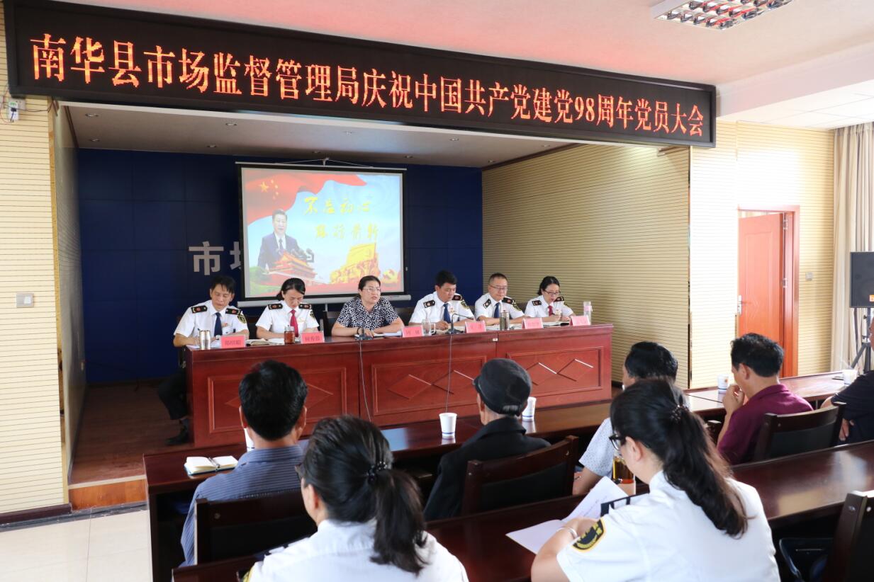 近日,南华县市场监督管理局党委扎实开展“十二个一”活动,隆重庆祝建党98周年,重温党的光辉历史,讴歌党的丰功伟绩,激发广大党员干部立足岗位作贡献,在决胜脱贫攻坚、决胜全面小康中充分发挥先锋模范作用,提高该局党委各党支部的凝聚力和战斗力。