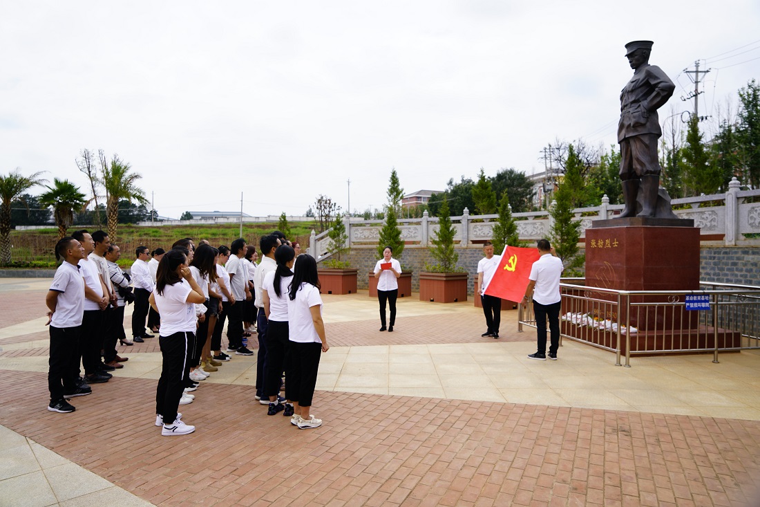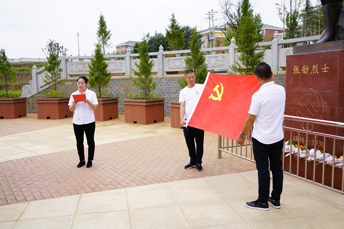 随后,全体党员高举党旗,到湿地公园张舫烈士铜像前缅怀先烈、重温入党誓词,开展了一次党史党性教育,深刻领悟先烈们不屈不挠、艰苦奋斗、无私奉献的革命精神。