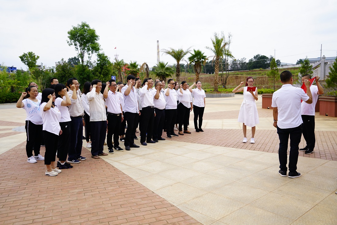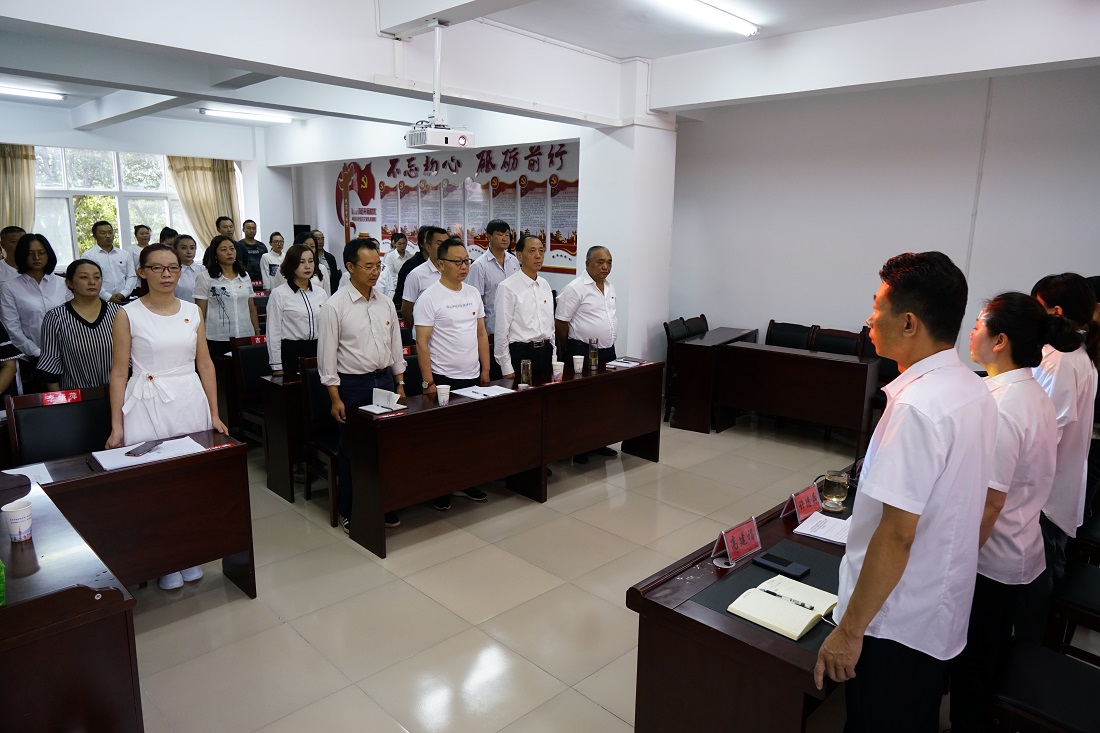 会议在庄严的国歌声中拉开帷幕,全体党员面对鲜红的党旗重温了入党誓词。