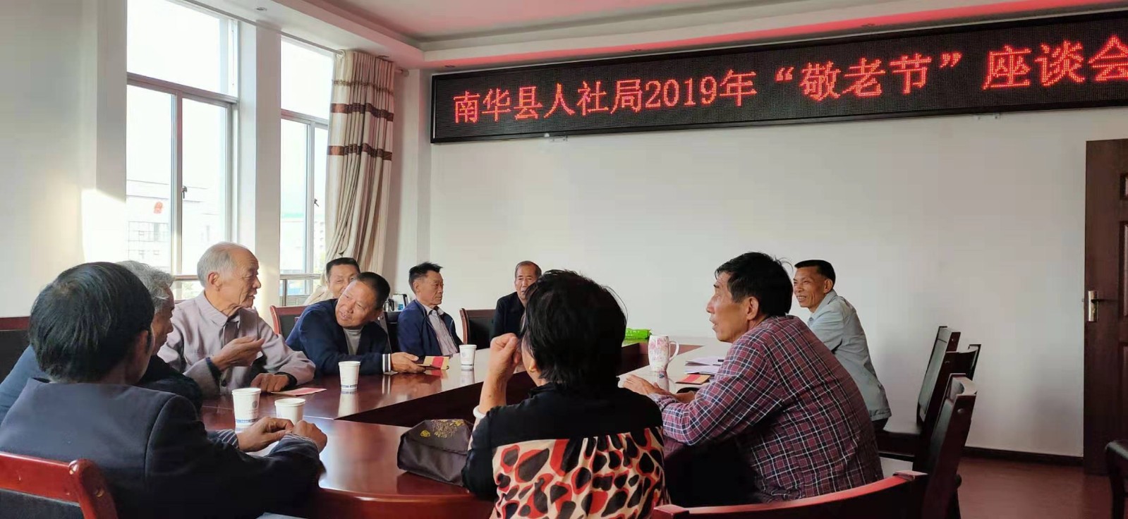 为弘扬中华民族尊老敬老的传统美德,结合正在开展的“不忘初心、牢记使命”主题教育,让退休职工过一个愉快、温馨的节日,敬老节前夕,县人社局12位退休干部在局四楼小会议室欢聚一堂,同庆重阳佳节,共贺新中国成立70华诞。