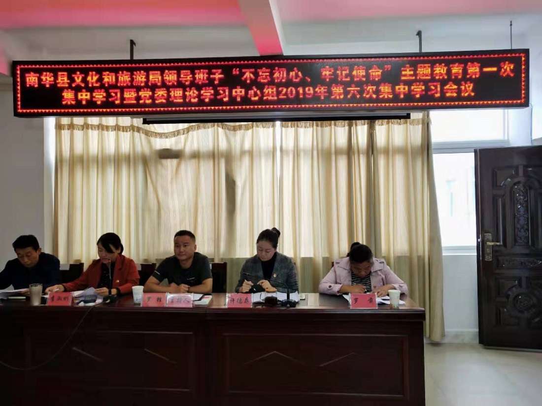 9月30日,南华县文化和旅游局召开领导班子“不忘初心、牢记使命”主题教育第一次集中学习暨党委理论学习中心组2019年第六次集中学习会议,县委第十巡回指导组到会指导。