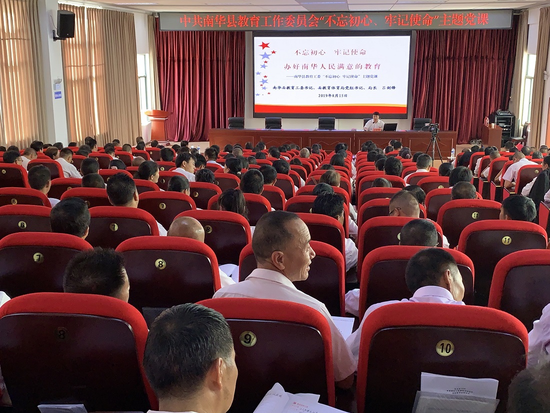 培训班于8月12日上午在湿地公园张舫烈士铜像广场开展“不忘初心、牢记使命”主题教育拉开序幕;开班仪式上党员共唱红歌《没有共产党就没有新中国》《我宣誓》,集体诵读《中国共产党章程》党员义务。县教育工委书记吕剑锋同志作了开班动员讲话,并以《不忘初心、牢记使命,办好南华人民满意的教育》为题给参训党员教师上党课。