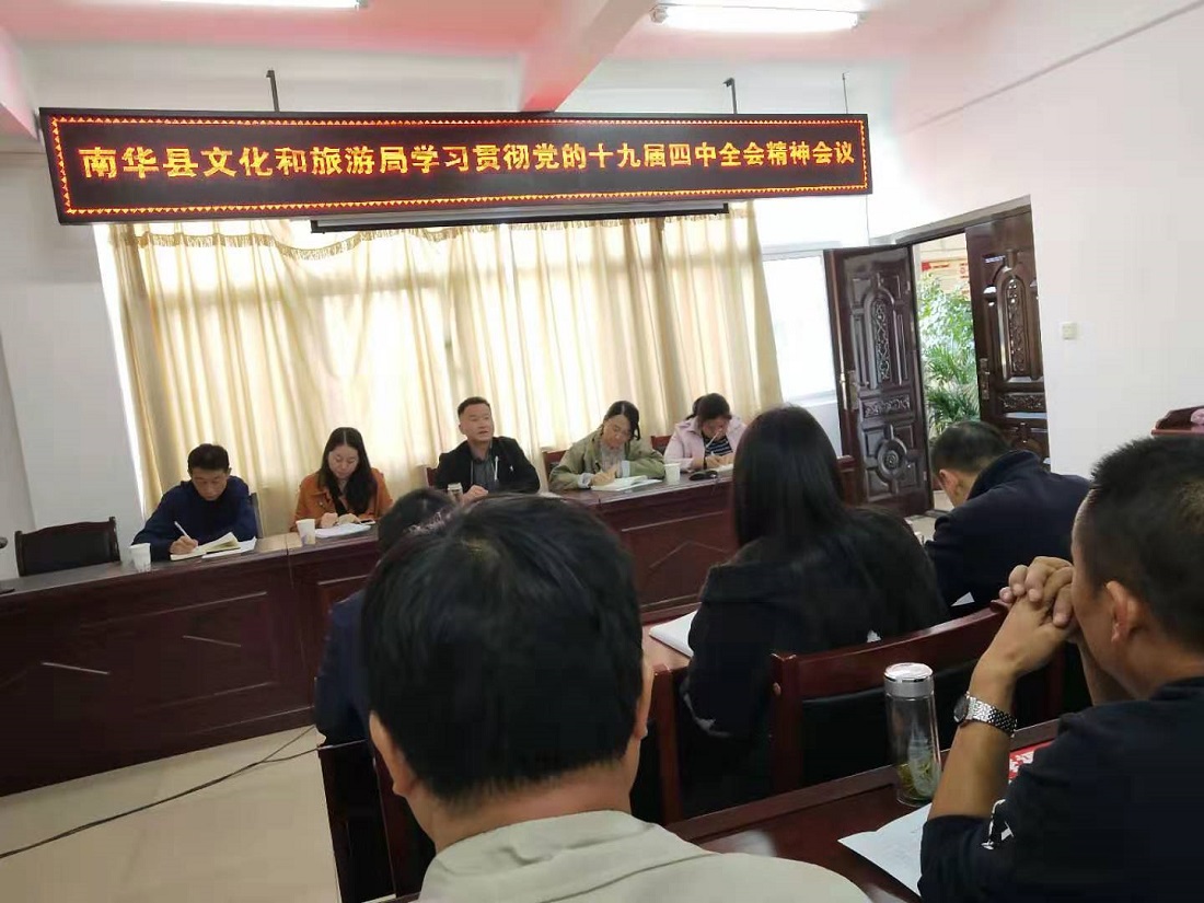 11月4日,南华县文化和旅游局召开全体干部职工会议,认真传达学习了党的十九届四中全会精神。