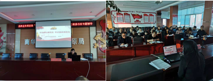 读书班邀请南华县委党校高级讲师夏银香作主题为“不忘初心跟党走,牢记使命勇担当”的专题辅导。夏银香同志从中国共产党人的初心和使命是什么、为什么要“不忘初心、牢记使命”、守初心担使命,做新时代敢担当有作为的党员干部三方面生动讲说,让党员同志真正做到学懂、弄通、做实,把理论学习和岗位职责相结合,充分发挥党员先锋模范作用,以实际行动践行共产党人的初心和使命。
