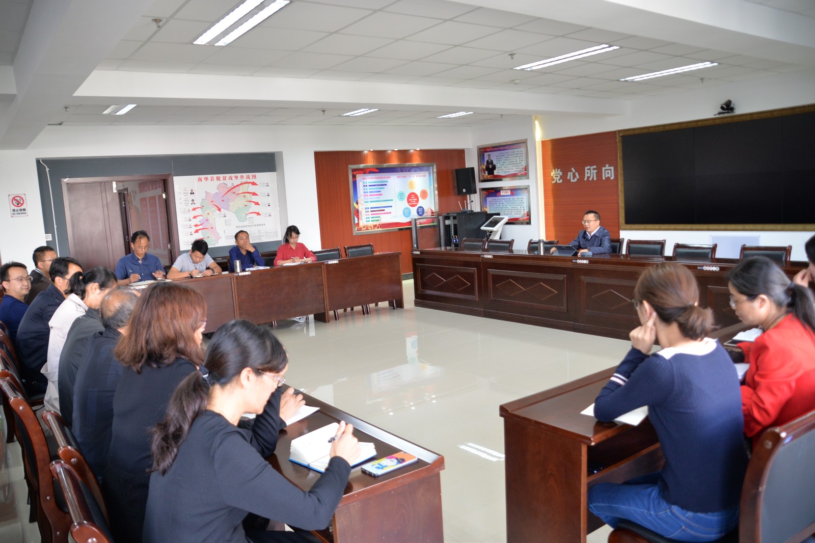 10月21日,县委副书记鲁泽强到县扶贫办组织召开座谈会,就脱贫攻坚工作进行专题调研。