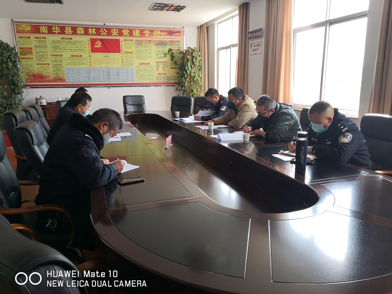 南华县森林公安局局长周国民就1月23日以来打击野生动物非法贸易专项工作做专题汇报:一是行动迅速,接到州局电话通知,立即组织警力奔赴各餐馆、酒店、农家乐、集贸市场等地进行执法检查;二是检查到位,全县共检查餐饮场所127家、野生动物活动区域22处、农贸市场15个、野生动物驯养繁殖场所12家、花鸟市场1个,检查工作覆盖全县所有角落;三疫情防控与执法办案两不误,在疫情防控期间,南华县森林公安局查处无证驯养野生动物案件1件、违规野外用火案件1件、无证运输木材案件1件;四是积极投入疫情防控攻坚战,在做好执法办案主业的同时,排查民警辅警家属、林区从业人员有无出入疫区活动轨迹,民警身体有无异常症状,积极参与疫情监测点治安秩序维护,自1月27日起,每天安排民警上卡执勤,维护疫情监测点治安秩序;五是力所能及做好民警辅警自身安全防护,在防疫物资有限的情况下,多方筹措,购置口罩、手套、护目镜等防疫物资,保障一线执法执勤民警辅警自身安全;六是严格执行二级勤务,在疫情期间实行双领导带班制度,保障三分之二警力在岗,以备单位内部安全保卫、疫情防控及执法办案之需要。其他班子成员也对各自分管工作进行了补充汇报。