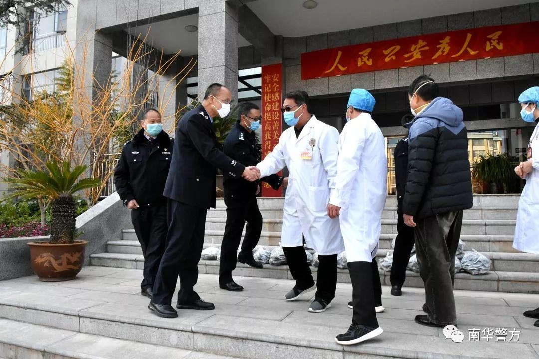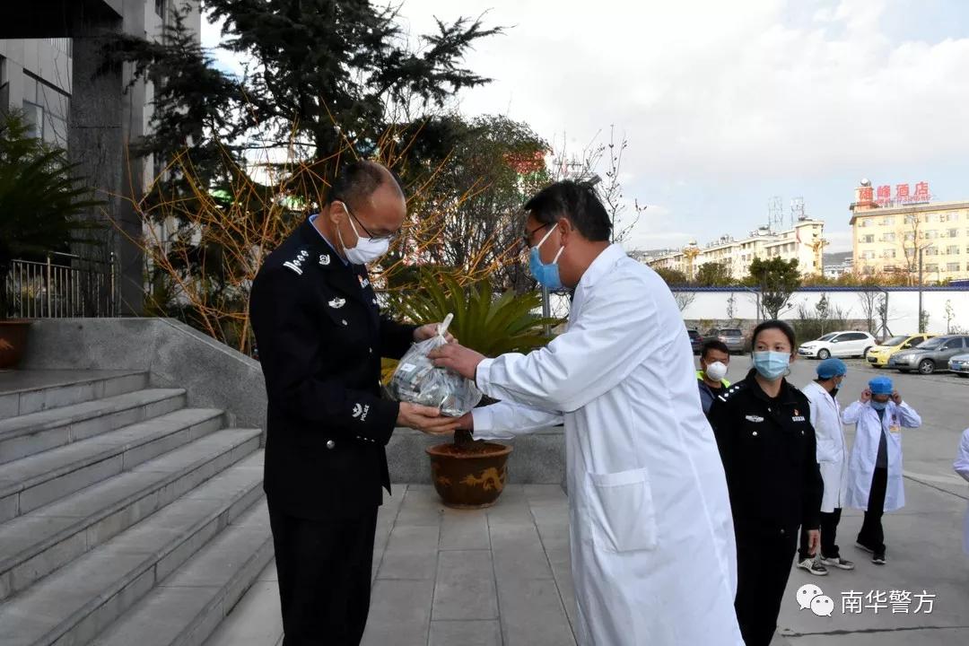 县人民政府副县长、县公安局党委书记、局长张惊雷对中医院的关爱表示感谢,中医院领导班子在抗击疫情的关键时刻为公安一线民警雪中送炭,充分彰显了医者仁心的博爱,在下步工作中,南华县公安机关将全力以赴、全力奋战,为广大人民群众筑牢坚固防线。