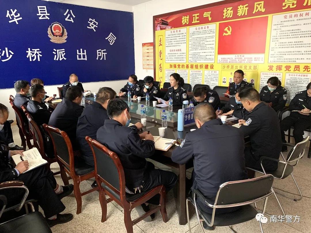 2020年3月24日下午,南华县公安局“治庸懒、强担当、树新风”主题实践现场推进会在沙桥派出所召开。局党委班子、九个专项工作负责人、局主题实践办全体工作人员,龙川、雨露、五街三个派出所负责人,沙桥派出所全体民警共计30余人参会,会议由局党委委员、政工监督室主任王瑾主持,州公安局主题实践办杨宏欣一行莅临指导工作。