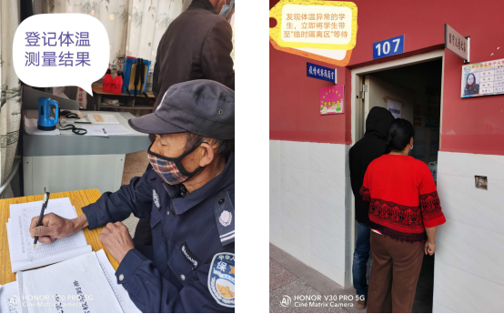 按照学校制定的应急处理流程,值班教师迅速将该名学生带到校内的隔离室等候,由疫情报告人在开展询问学生身体状况、了解假期活动轨迹、体温再次测量等情况后,第一时间向学校负责人报告情况并通知家长,并要求家长到校外指定区域接学生,带领学生到发热门诊及时就诊。