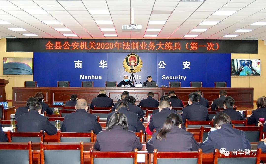 2020年2月25日下午,在新型冠状病毒感染的肺炎疫情防控期间,为避免执法不当引发的社会矛盾和造成舆论炒作等问题的出现。按照县局党委的要求,南华县公安局法制大队组织全局民警、辅警开展以“严格、规范、公正、文明”执法为主题的疫情防控相关法制业务培训。培训在县局设主会场、十个派出所设分会场,全局除值班及有特殊工作外的全体民警、辅警参与此次培训。培训由县公安局党委委员、副局长包文华同志主持,由法制大队长罗金龙负责业务知识培训。
