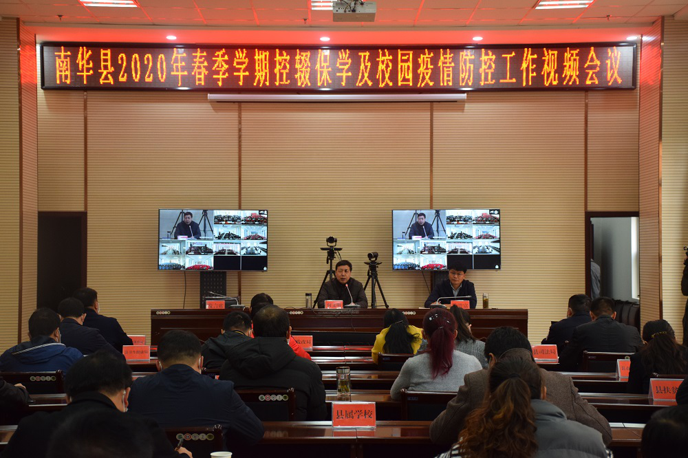 2月27日上午,南华县召开2020年春季学期控辍保学及校园疫情防控工作视频会。县委副书记、县人民政府县长何文明出席会议并讲话,县人民政府副县长陈贵富主持会议。