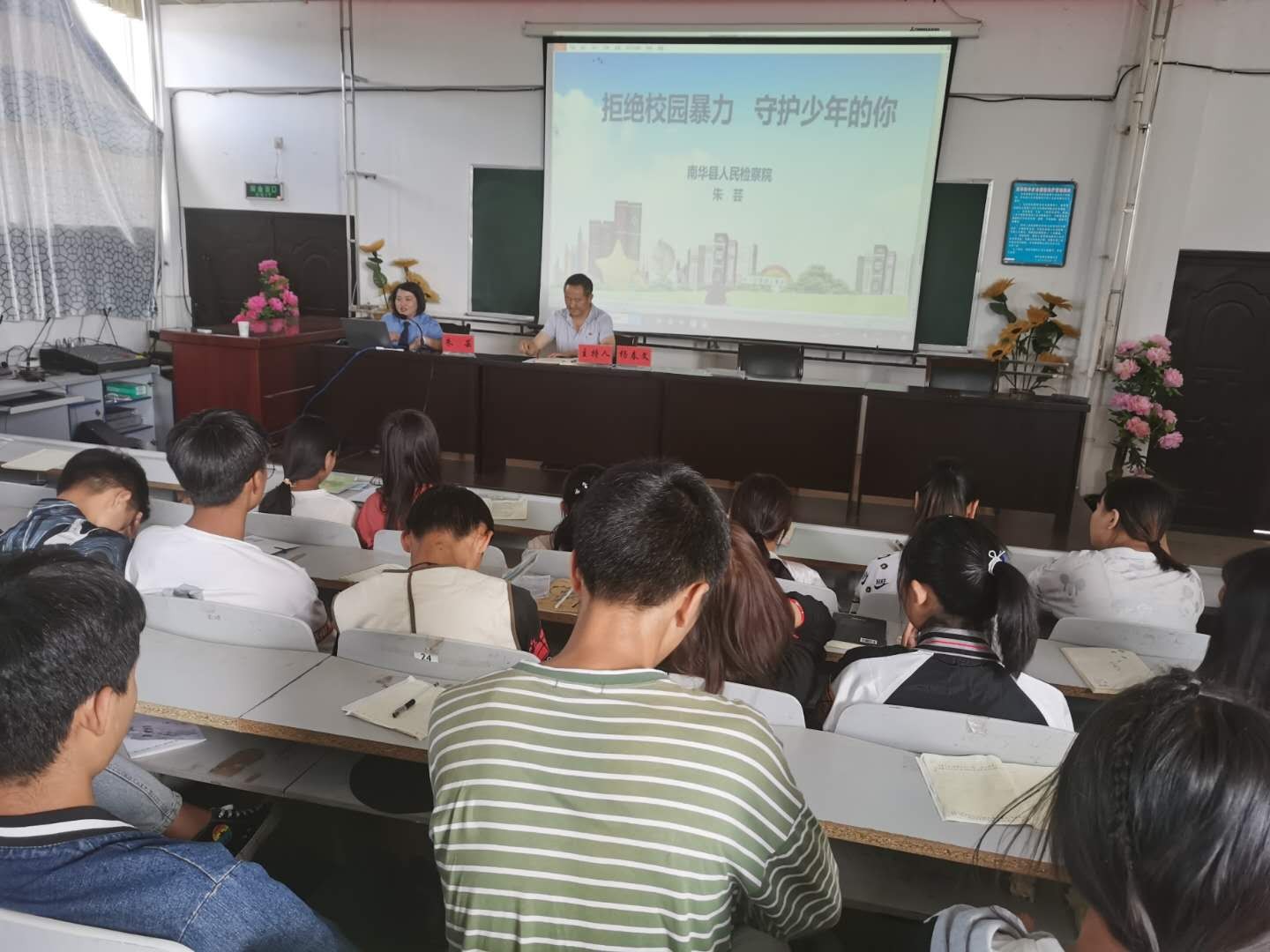 近期,南华县人民检察院副检察长朱芸到县职中对高一年级260名师生进行“拒绝校园暴力,守护少年的你”专题法治教育。