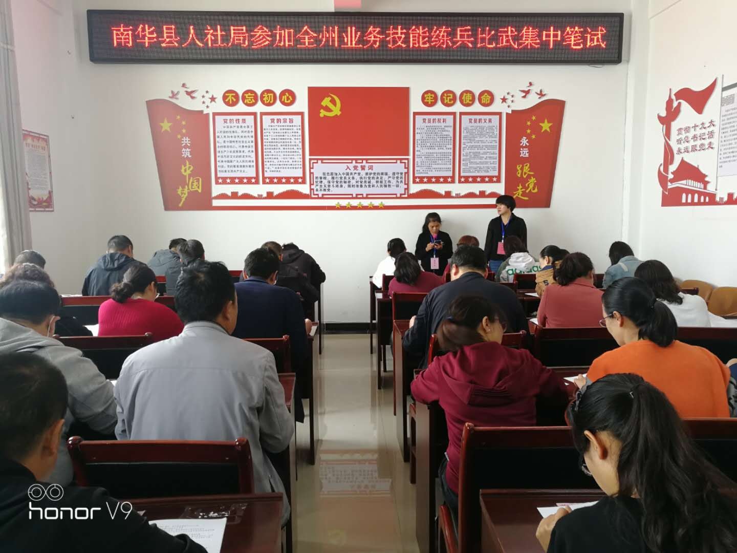 按照全州统一部署,5月29日上午9点,南华县人社局组织全局干部职工在五楼党员活动室参加全州人社窗口单位统一开展业务技能练兵比武集中笔试。