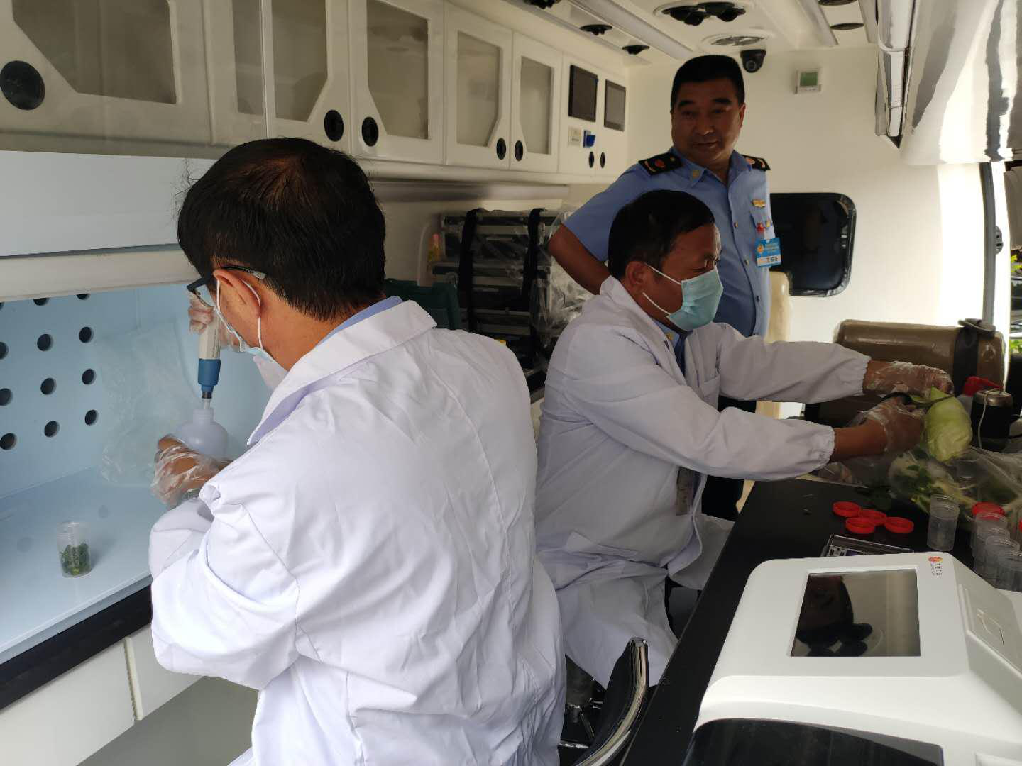 四是加强检测,监检结合。使用食品安全快速检测车开展购进蔬菜农残速测工作,检测 76 批次,以确保食用蔬菜水果质量安全可靠,顺利上桌。