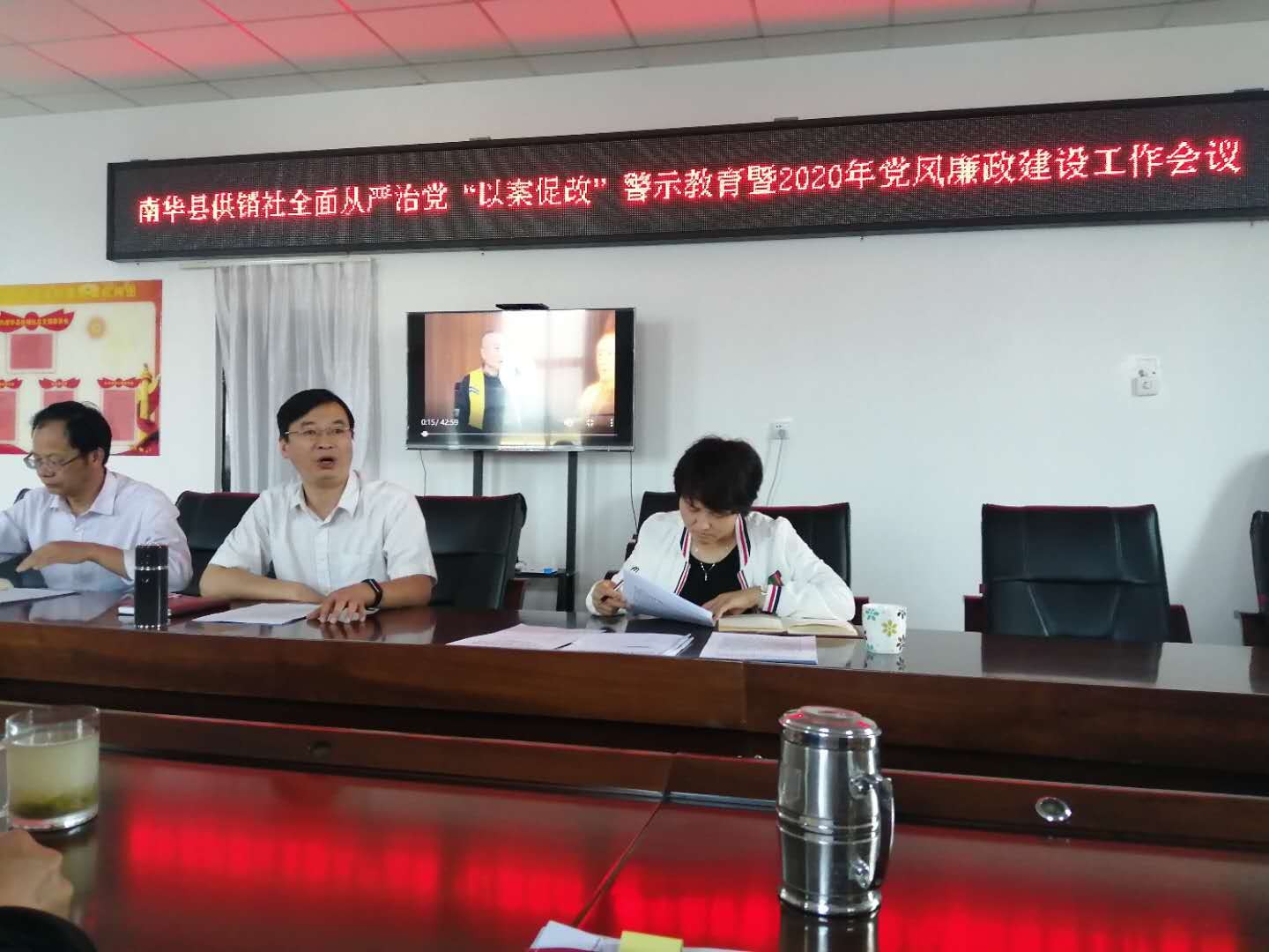 5月14日,南华县供销社召开全面从严治党“以案促改”警示教育暨2020年党风廉政建设工作会议。全体干部职工参加会议。