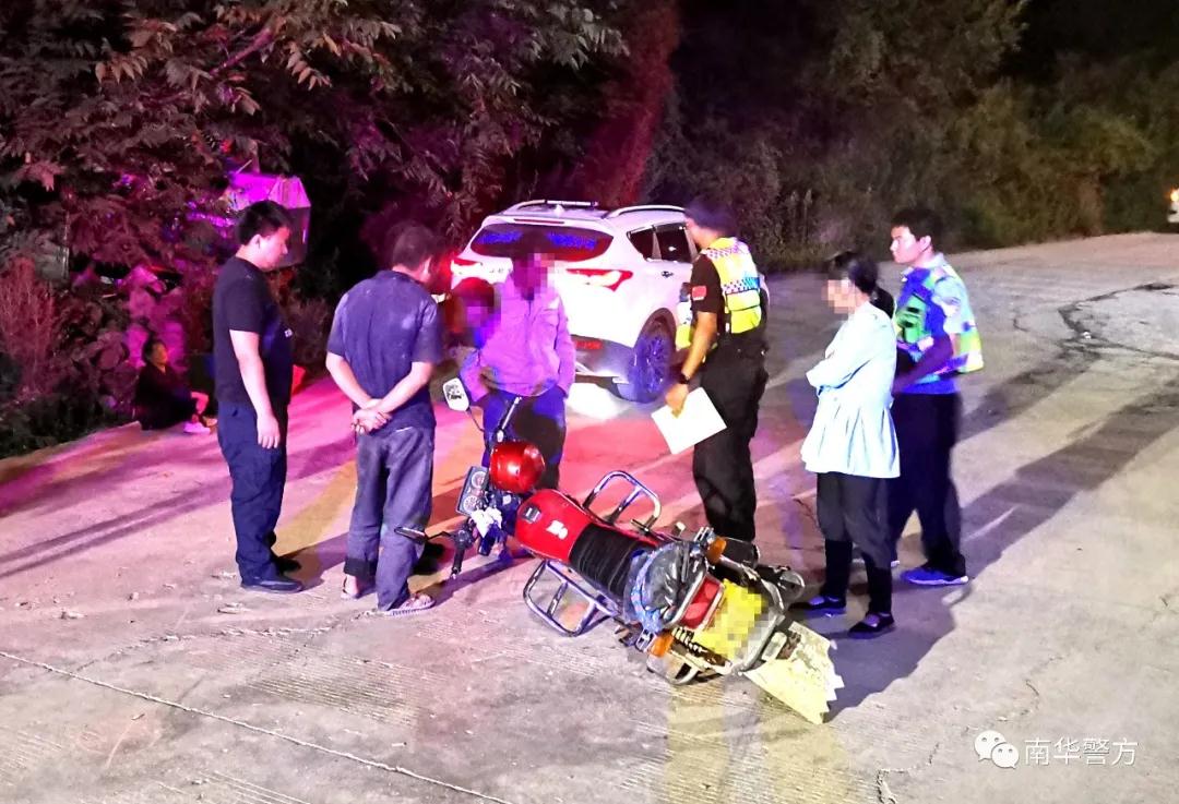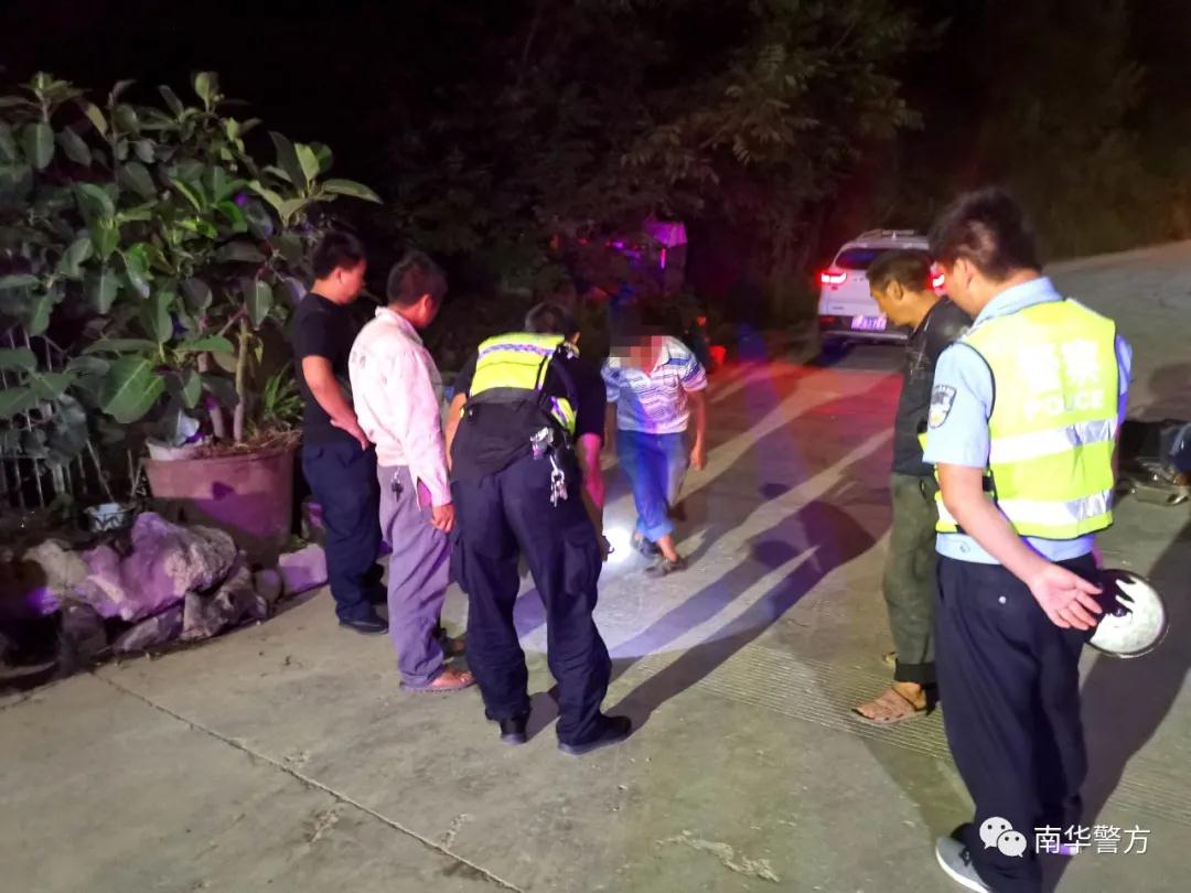 8月13日晚7点49分,南华县公安局罗武庄派出所接县局110指挥中心指令:“在罗武庄乡集市岔路口一辆小车和摩托车相撞,有一人受伤,请处理。”