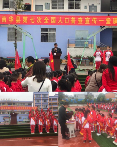 为全面推进第七次全国人口普查宣传进校园活动,增强广大中小学生的爱国意识和责任意识,根据《南华县第七次全国人口普查领导小组办公室关于印发南华县第七次全国人口普查宣传月活动计划的通知》要求,南华县龙川小学于10月16日上午在学校足球运动场组织全校1272名师生开展“人口普查一堂课”活动。